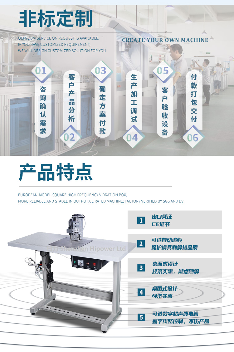 機(jī)器特點(diǎn): | 500W 35K腳踏操作,氣動(dòng)控制,帶工作臺(tái)。 |