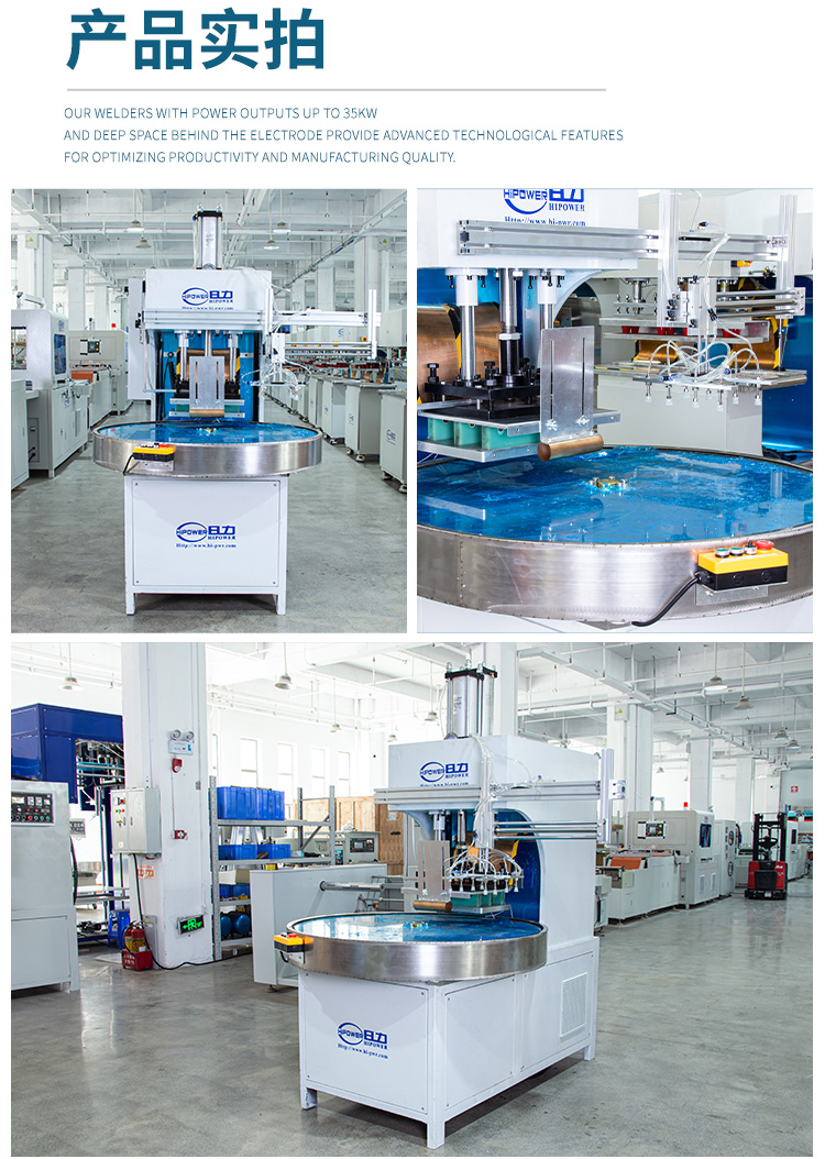 ★高周波熔接機(jī),通常也稱為高周波吸塑包裝機(jī)、高周波塑料熔接機(jī)、高頻熱合機(jī)、高頻封口機(jī)、吸塑包裝機(jī)、高周波封口包裝機(jī)、熱合封口包裝、泡殼包裝機(jī)、高頻熱合包裝機(jī)、吸塑包裝機(jī)、高周波封口機(jī)、高頻包裝機(jī)、高周波包裝機(jī)、包裝機(jī)械等等。單頭推盤式高周波熔接機(jī)和單頭轉(zhuǎn)盤式高周波熔接機(jī)有手動(dòng)和自動(dòng)兩種可供選擇,自動(dòng)推盤式或自動(dòng)轉(zhuǎn)盤式的高周波機(jī)效率更高,產(chǎn)量更好。連續(xù)送料熔接,定位準(zhǔn)。也適用用大面積產(chǎn)品的加工,熔接,如PVC水床,漂流筏,兒童泳池等。