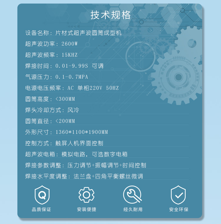 適用范圍: | 主要用來制作PVC、APET、PETG、PP等塑膠圓筒自動卷邊。 |