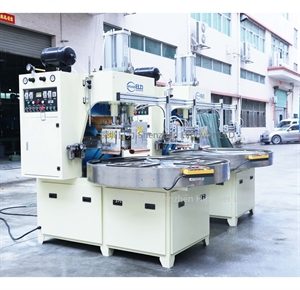 主要用于需要高周波熔接同時又必須同步裁斷的產(chǎn)品加工,高周波機的工作原理是利用高周波先熔接再通過機器配有的壓力裝置同時切斷。因為是同時完成,所以稱為高周波同步熔斷機。也稱為高周波熔斷機、熔斷機、高周波同步裁斷機、高周波裁斷機。主要適用于APET、PETG、GAG環(huán)保材質(zhì)的雙面吸塑泡殼的封口包裝、吸塑紙卡包裝、牙刷封口包裝,以EVA布類皮革、真皮、OPP、PU材質(zhì)的熔接及熔斷。全自動轉(zhuǎn)盤式高周波熔斷機的特點: