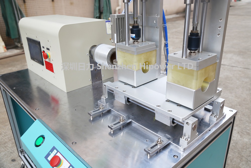 超聲波切除:利用超聲波焊接模具及底具的特別設(shè)計方式,通過超聲波的傳導(dǎo)達(dá)到超聲波切除布料或塑料的效果。