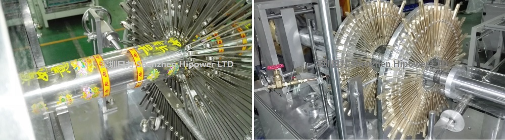 膠水成型速度: 約60pcs/分鐘 (按長度100mm/個 63mm 直徑)