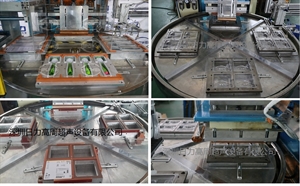 ★自動轉(zhuǎn)盤式,轉(zhuǎn)盤上可設(shè)模位:3工位,4工位,5工位,6工位等