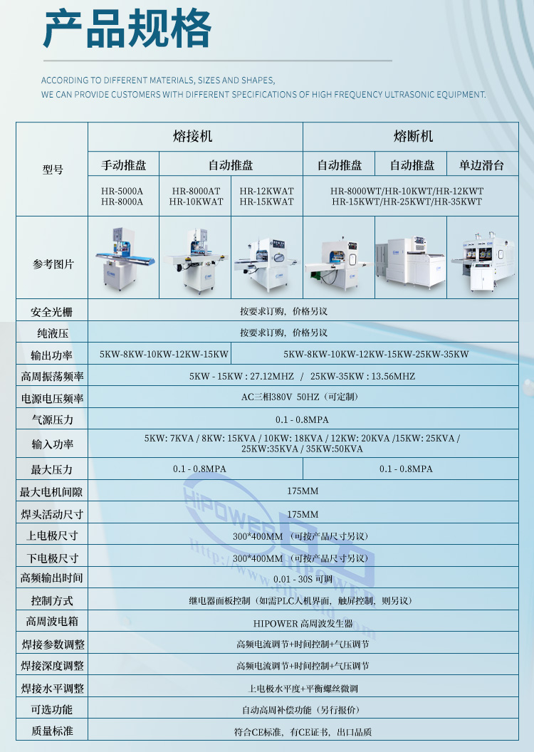 自動滑臺式純油壓高周波同步熔斷機的技術規(guī)格: