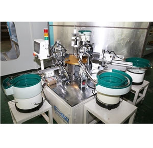 機器特點: | 三組振動盤自動上料,工件自動組裝一組漏斗式自動上料,28KHZ精密超聲焊接,自動取成品 |
