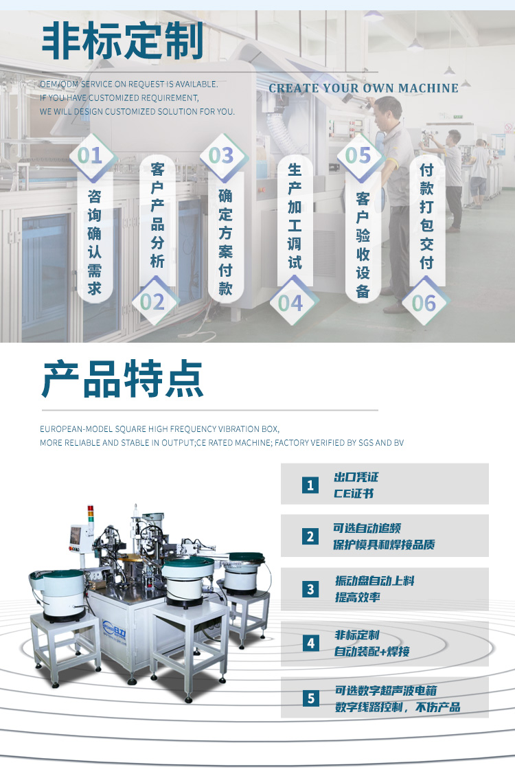 2. 一組漏斗式自動上料,28KHZ精密超聲焊接