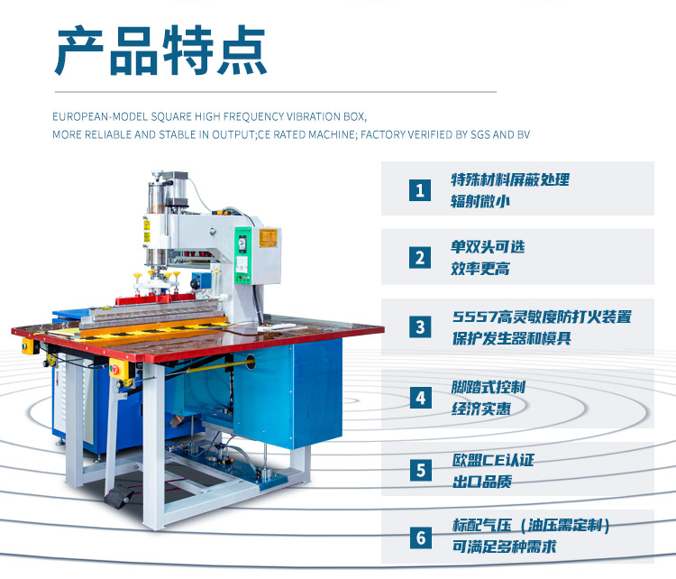 產(chǎn)量好。連續(xù)送料熔接,定位精準(zhǔn)。也適用用大面積產(chǎn)品的加工,熔接,如PVC水床,漂流筏,兒童泳池等。