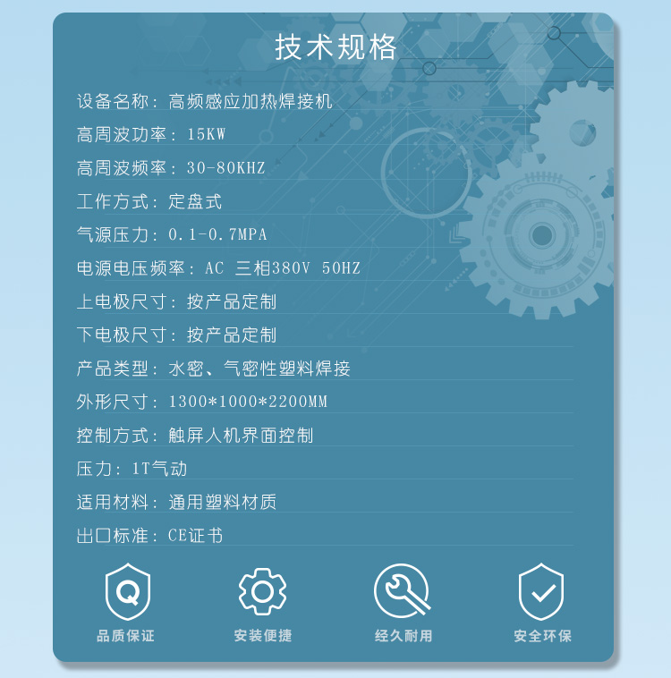 高頻誘導(dǎo)感應(yīng)加熱機是利用高周波之所以不會產(chǎn)生像超聲波發(fā)出對金屬聲音及溶劑所產(chǎn)生的惡臭或噪音等; 對具有相溶解性的塑膠材料,以使用高周波誘導(dǎo)加熱熔接;如PP材料的熔接、PP塑膠品的焊接等或特殊形體可以使用高周波誘導(dǎo)加熱熔接焊接; 高周波發(fā)振器是相當穩(wěn)定和回路構(gòu)造,操作簡單,不需一定熟練技巧即可操作。