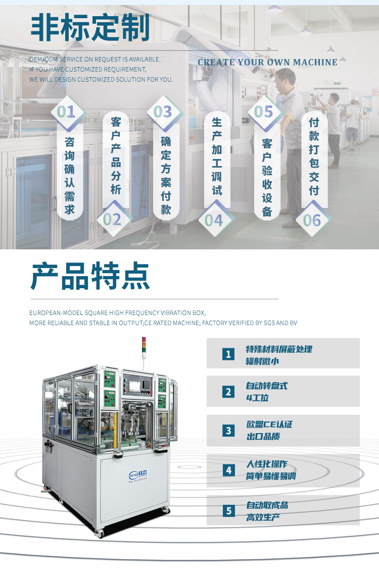 需要設(shè)計單工位或多工位的設(shè)備,可以設(shè)計制成左右自動滑臺式,多工位自動轉(zhuǎn)盤式結(jié)構(gòu),以提高產(chǎn)能。
