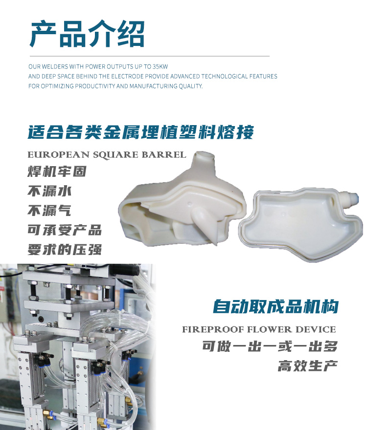※適用行業(yè): 家庭電器制品、樂器、文具、玩具、汽車零件等五金塑膠制品熔接加工。如,水壺類PP容器、汽車配件類PP容器塑料音箱的喇叭網(wǎng)埋植、金屬網(wǎng)喇叭、音響、五金制品、塑膠產(chǎn)品、電子產(chǎn)品的金屬同料膠埋植熔接。